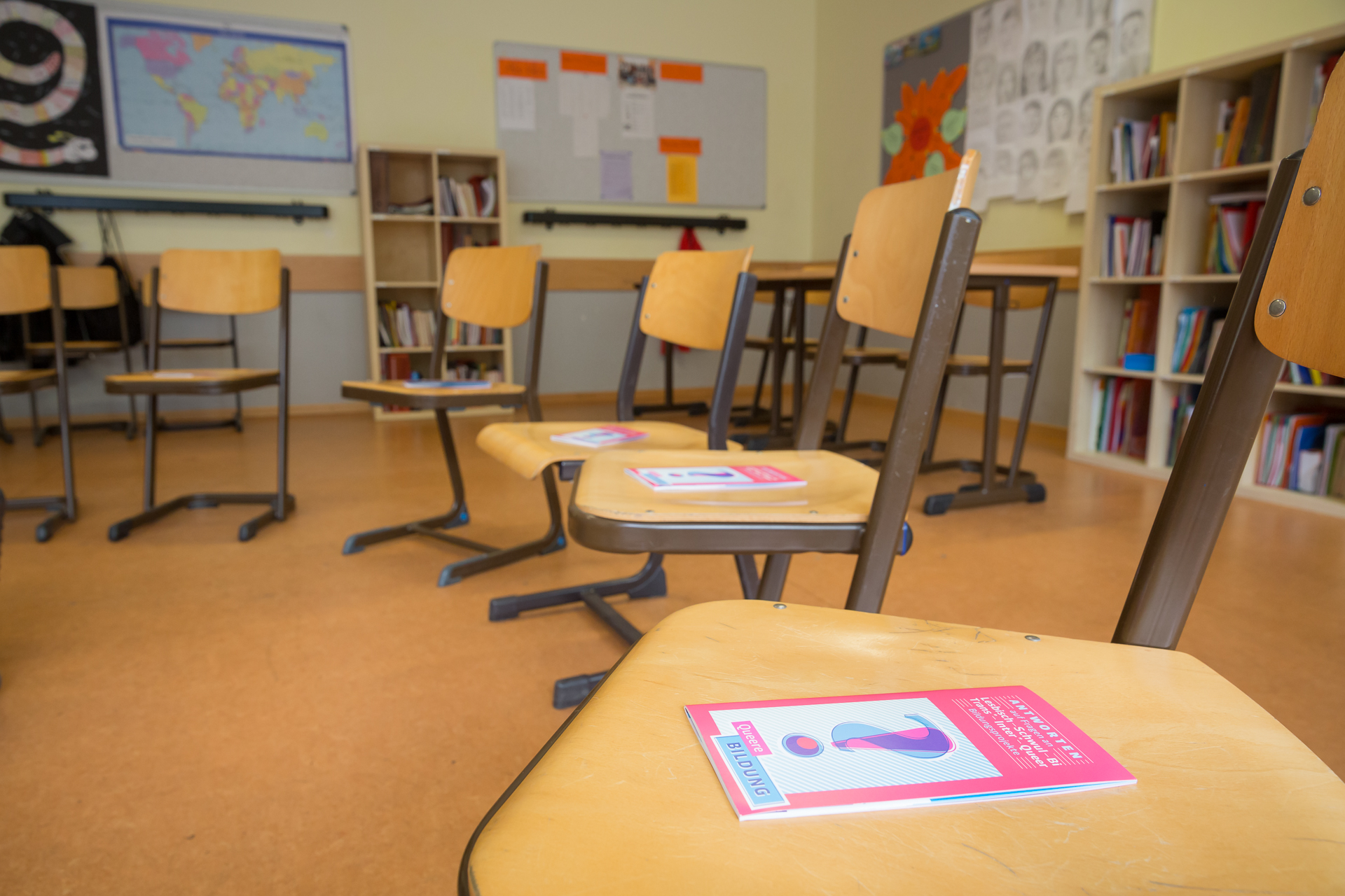 Junge, geschulte Ehrenamtliche, die selbst schwul, lesbisch, bi, trans*, inter* oder queer (LSBTIQ*) sind, führen die Workshops durch. Mit Methoden aus der Menschenrechtsbildung und der Antidiskriminierungsarbeit sensibilisieren sie die Schüler*innen für die vielfältigen Lebenssituationen von queeren Menschen, um Vorurteile und Queerfeindlichkeit abzubauen.